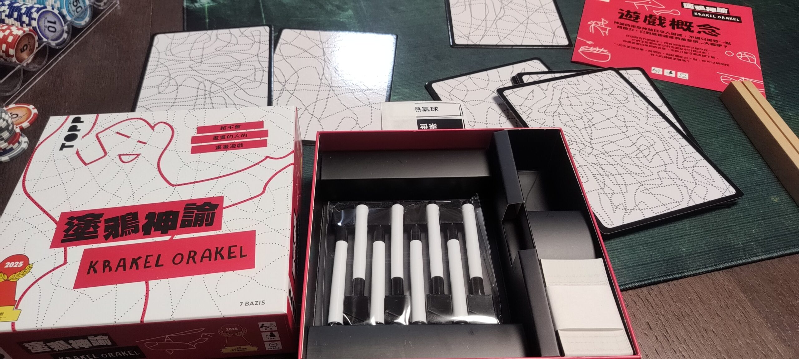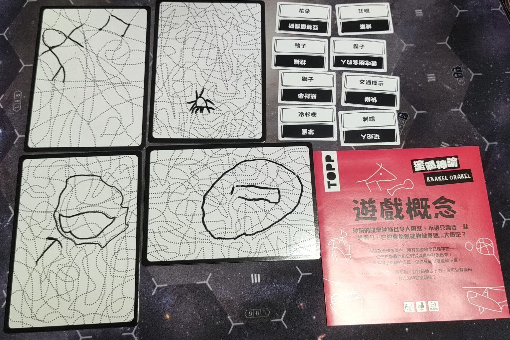 在開始前,我覺得這遊戲的名字很有趣,想要先來分享。原來德文名字 Krakel Orakel,意思是潦草亂畫的神諭,跟中文的取名是一致的,塗鴉神諭。先說,個人覺得翻譯的非常好,完全到位,也是這遊戲想傳達的精神,在一片混亂的圖鴉中,找到神跡。如果是我來翻,應該會叫做卡拉OK!