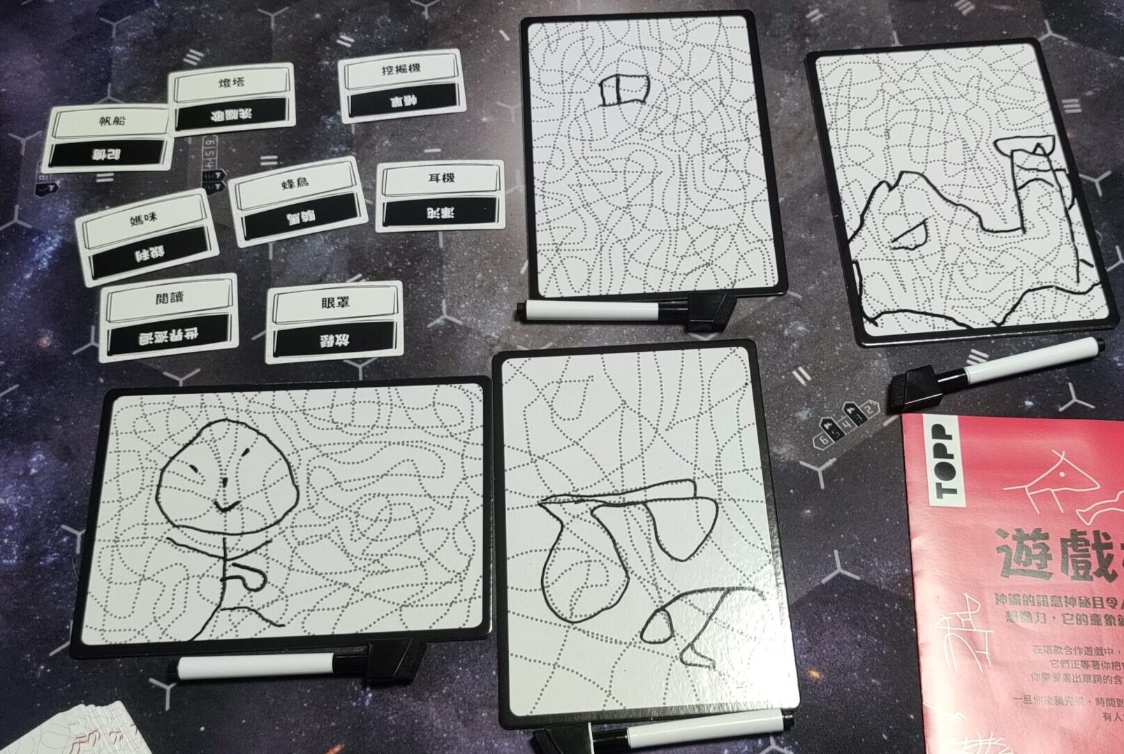合作的塗鴉分析桌遊,可以說是專門設計給不會畫畫的人來畫畫的。這遊戲最神的地方是,有人畫的再好,都會被設限,版面無厘頭的虛線,讓眾生平等,還要想辦法讓大家猜出來?靠的不是畫工,而是心意相通!